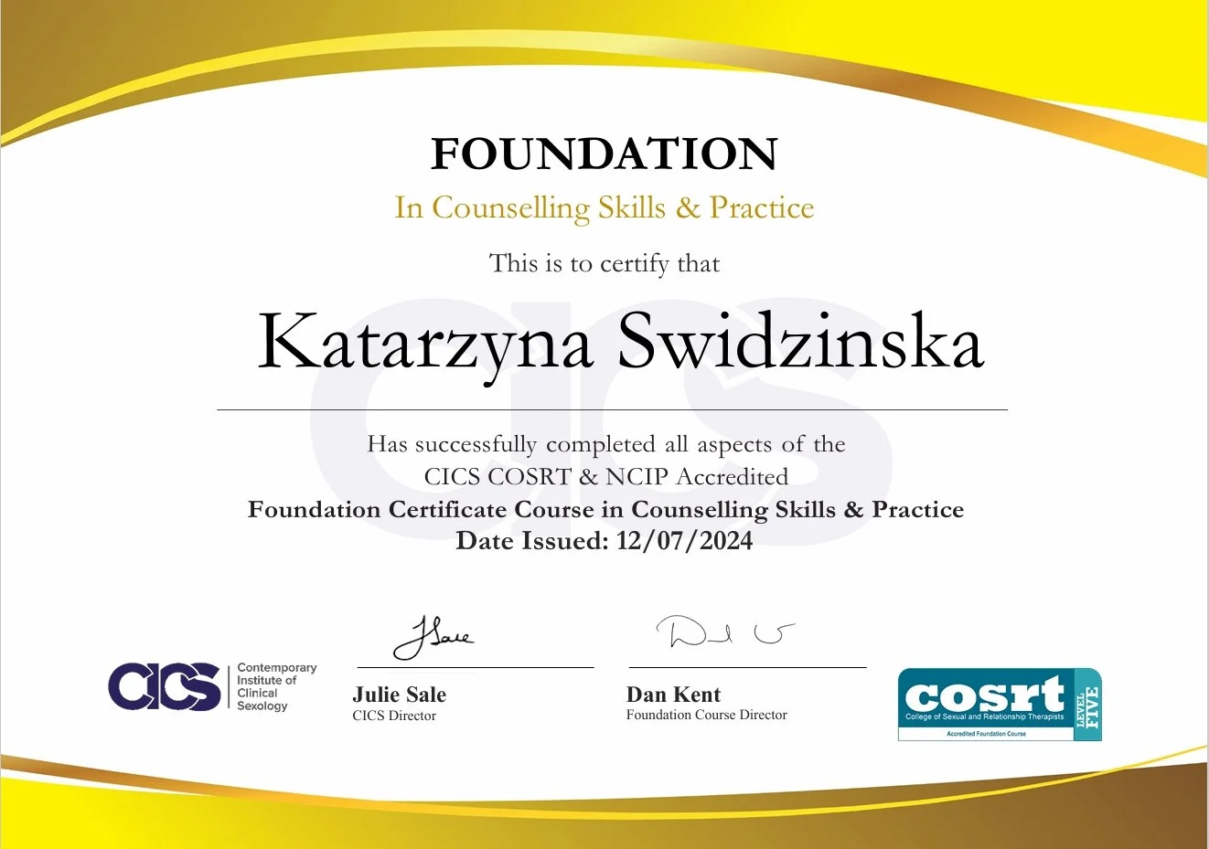 Praktyki - Psychoseksterapeuta i Terapeuta Par (11.2025 - w toku)